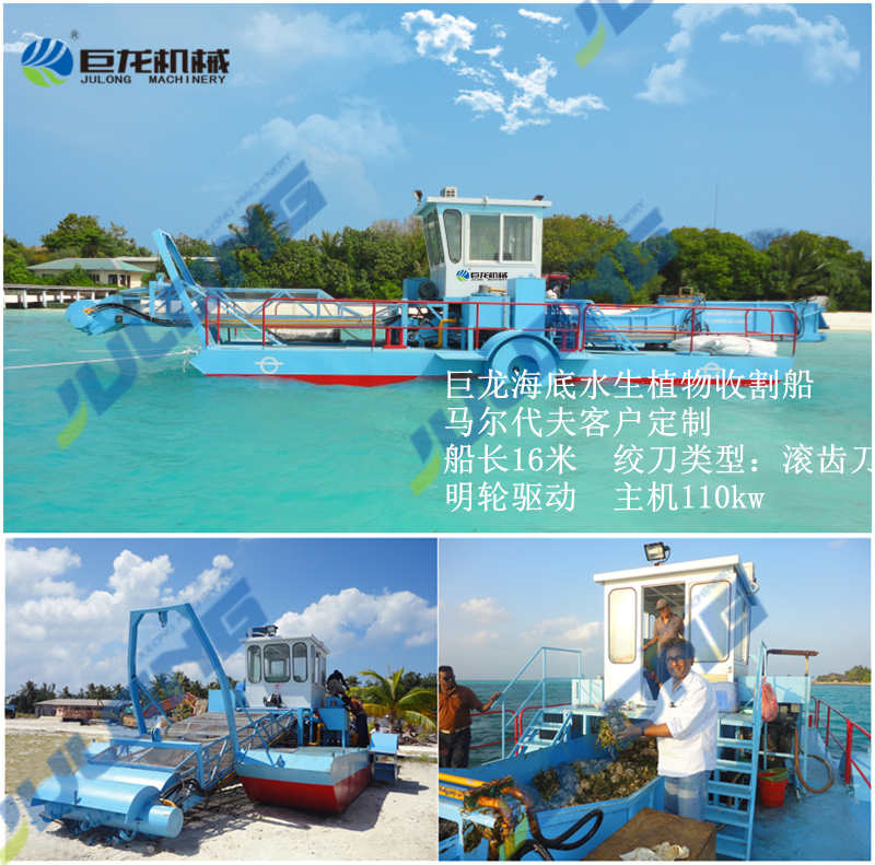 1、巨龍海底割草船可以非常的割除海底的植被,包括植被的根部。該設(shè)備安裝有滾刀齒,能夠切割海底的植被。刀頭上的刀齒長度為20cm,能夠挖掘海底沙子層面下20cm處的海草根部。水生植被由前面的鏈帶收集,由后面的鏈帶儲存。當(dāng)后面的鏈帶裝滿以后,該設(shè)備將會航行到岸邊卸載或者直接將植被卸載到運(yùn)輸船上。