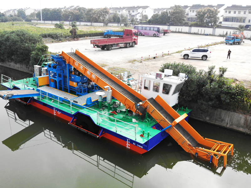 1、自動(dòng)水上割草船能夠收集河道內(nèi)濃密的水草以及水上漂浮物。所有的機(jī)械化運(yùn)轉(zhuǎn),包括明輪,切割刀具,傳送鏈以及收集輪,都采用液壓系統(tǒng)控制。擁有強(qiáng)大的水草收割和水域清理功能。