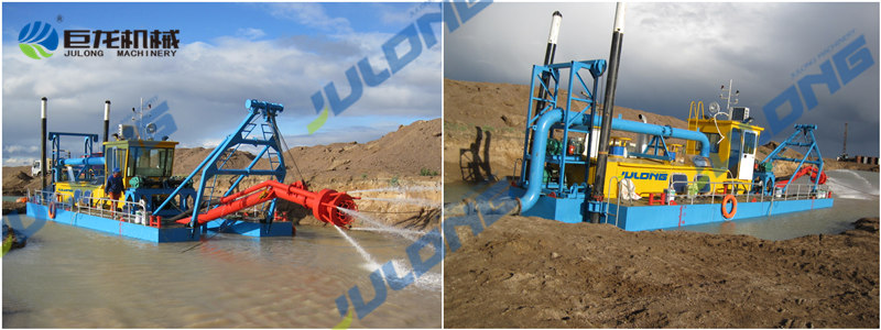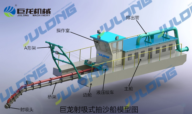 射吸式挖泥船工作原理:射吸式挖泥船依靠挖泥船上安裝的離心式泥泵的作用,在挖泥船吸管中產(chǎn)生一定的真空度,經(jīng)吸入管頂端的吸泥頭將水底淤泥、砂和其它比較松散的物質(zhì)與水一起吸起,經(jīng)泥泵的排除管,將泥漿排駁或輸送到排泥場(chǎng)。挖泥船在水庫清淤中,為了增加吸泥效果,又在吸入管頂端前部增加了噴射使得泥漿濃度提高,提高了挖泥船生產(chǎn)效率。該型挖泥船只適用于吸取水下砂質(zhì)和無粘性的土質(zhì),以及較松軟易于流動(dòng)的泥漿,故該挖泥船多用于道的維護(hù)性疏浚及河口的維護(hù)性清淤。